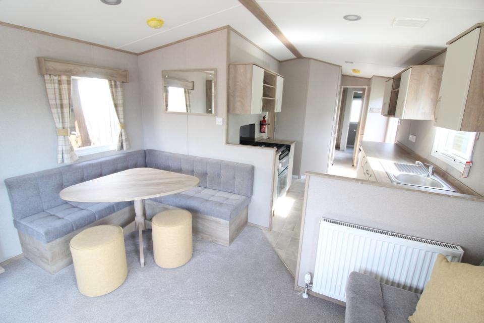 Una caravana de 2 dormitorios de 3,6 metros de ancho. Calefacción central de gas GLP y doble acristalamiento. El salón tiene asientos fijos, techo a dos aguas y chimenea eléctrica. Decorado con buen gusto en una combinación de colores moderna. El comedor tiene asientos fijos y una mesa independiente. Cocina amueblada con vitrocerámica de GLP y gran espacio de almacenaje. El cuarto de baño está equipado con lavabo, inodoro y ducha grande. Un dormitorio con dos camas individuales y un dormitorio doble con baño privado. Una excelente caravana de 2024.