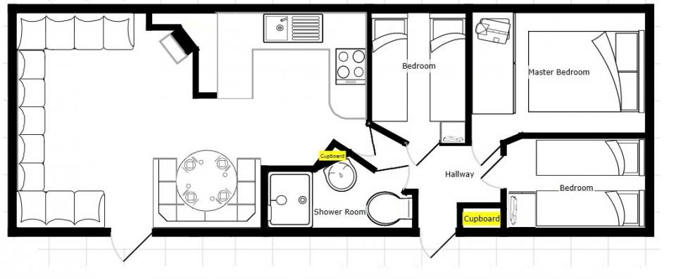 Una caravana de 3 dormitorios de 3,6 metros de ancho. El salón dispone de asientos fijos y chimenea de gas GLP. El comedor tiene asientos fijos y uno independiente. Cocina amueblada con hornillo de gas GLP y buen almacenaje. El cuarto de baño está equipado con lavabo, inodoro y cabina de ducha estándar. Dos habitaciones dobles y una habitación principal. Una caravana del año 2009.