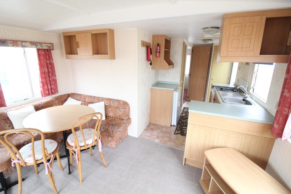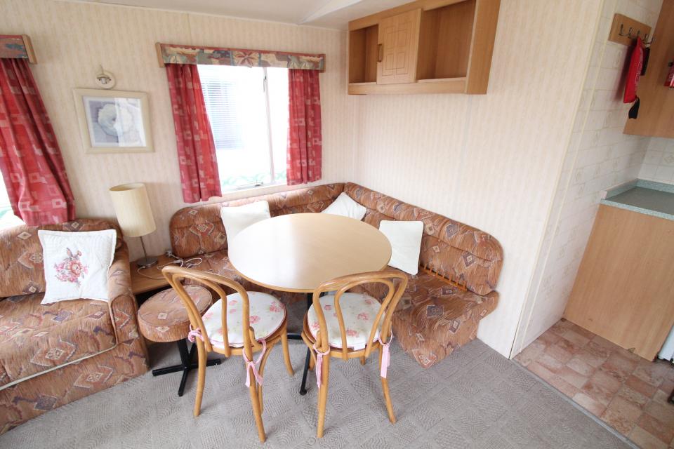 Una caravana de 2 dormitorios de 3,6 metros de ancho. El salón dispone de asientos fijos y chimenea de gas GLP. El comedor tiene asientos fijos y una mesa independiente. Cocina amueblada con hornillo de gas GLP y buen almacenaje. El cuarto de baño tiene lavabo, inodoro y ducha estándar. Un dormitorio con dos camas individuales y un dormitorio doble. Una caravana del año 2001.