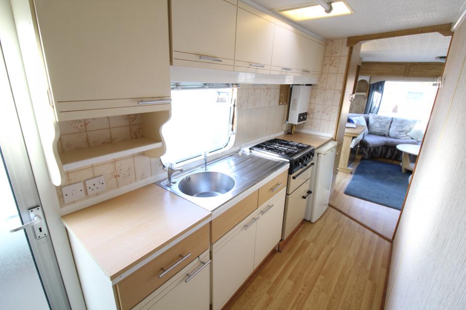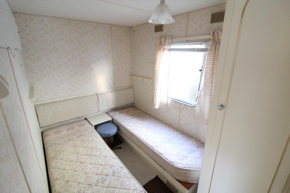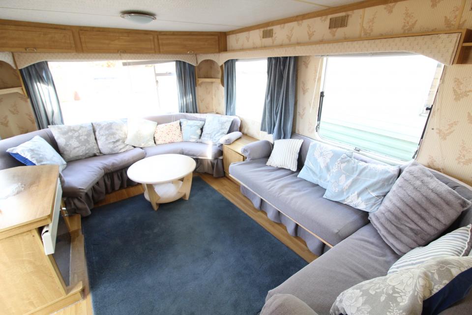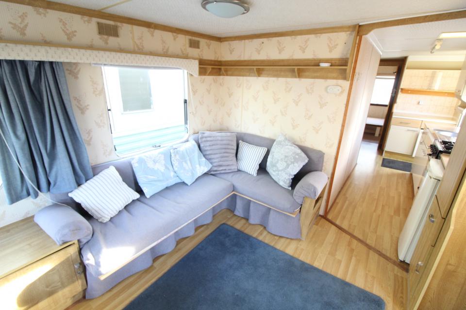 Una caravana de 2 dormitorios de 3 metros de ancho. SE VENDE COMO SE VE PARA RENOVACIÓN. El salón tiene asientos fijos y un calentador eléctrico. Cocina de galera con cocina de gas GLP y buen espacio de almacenamiento. El cuarto de baño está equipado con lavabo, inodoro y ducha estándar. Un dormitorio con dos camas individuales y un dormitorio doble. Una caravana de 1993.