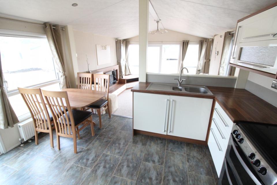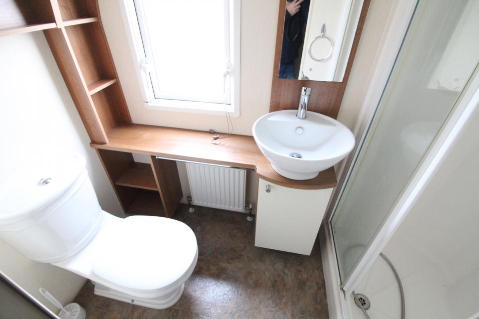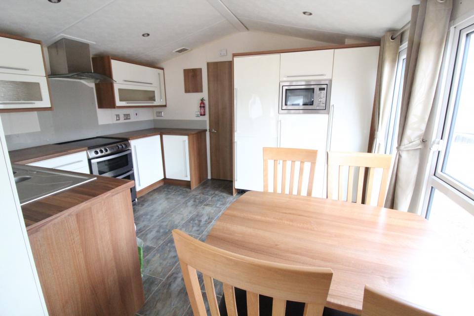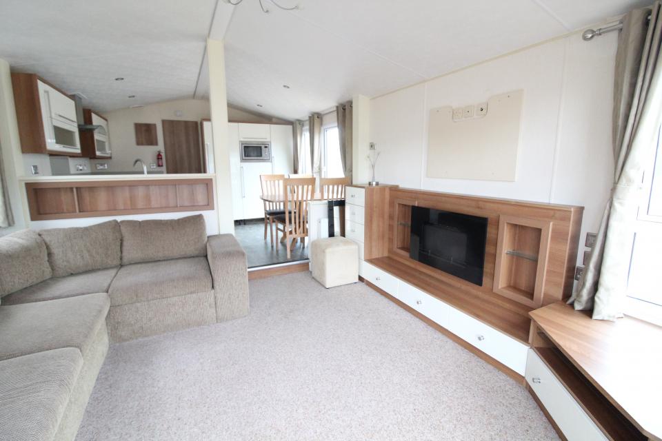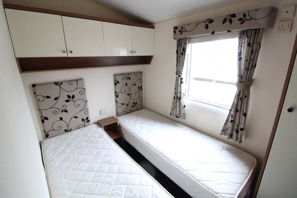 Una caravana de 2 dormitorios de 3,6 metros de ancho. Todo eléctrico. Calefacción central eléctrica y doble acristalamiento. El salón tiene asientos fijos, chimenea eléctrica, techo en ápice y puertas frontales que se abren. El comedor tiene una mesa y sillas independientes. Cocina amueblada con horno eléctrico y vitrocerámica. El cuarto de baño está equipado con lavabo, inodoro y cabina de ducha grande. Un dormitorio con dos camas individuales y un dormitorio doble con baño privado. Una caravana del 2010.