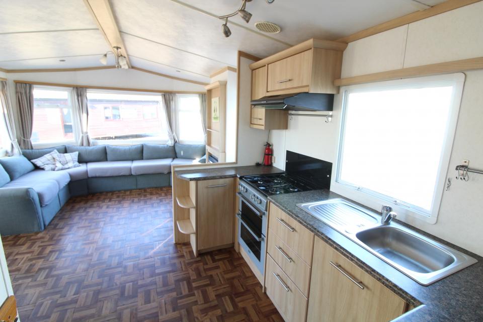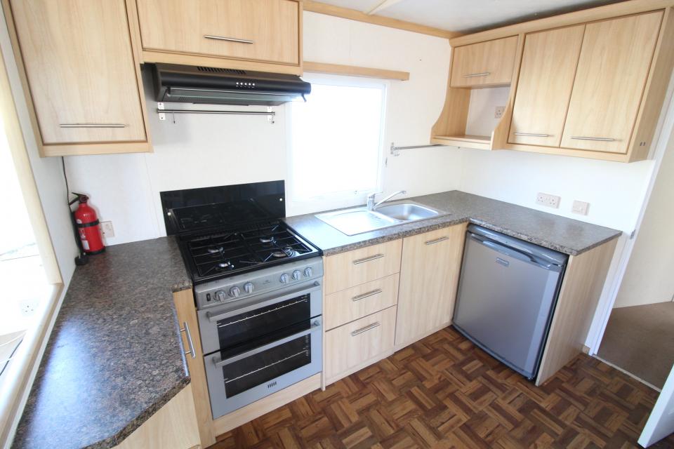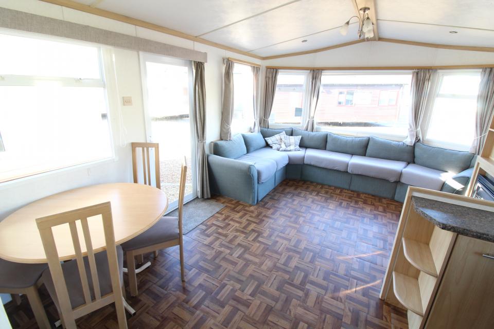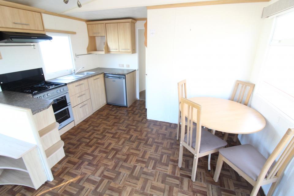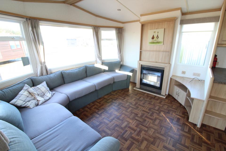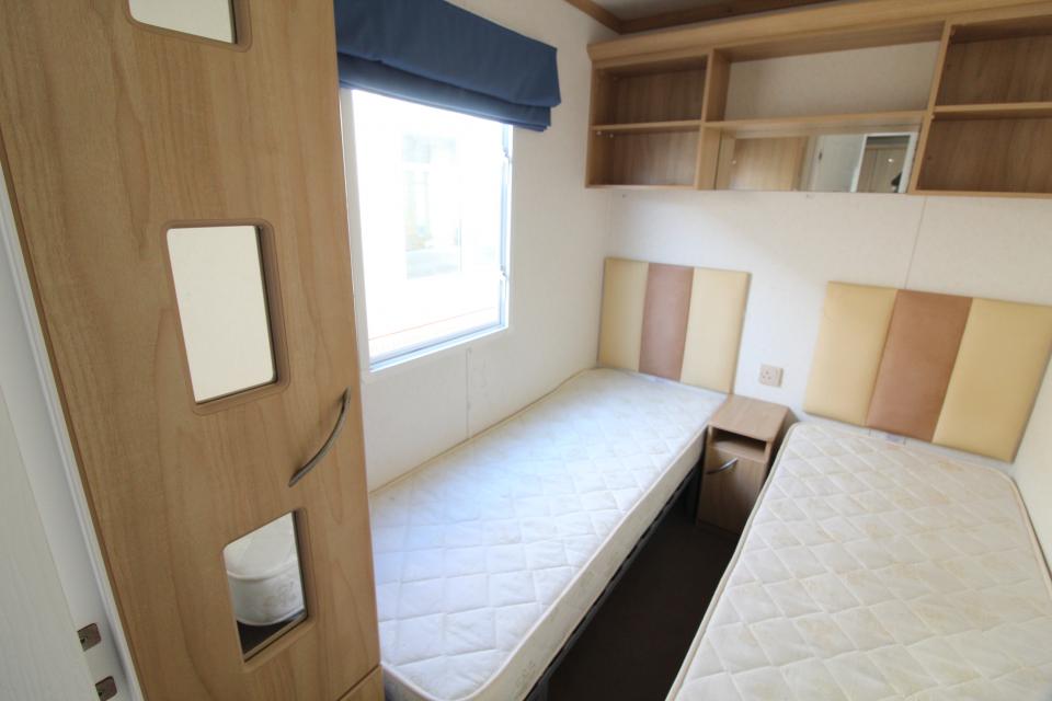 Una caravana de 2 dormitorios de 3,6 metros de ancho. El salón tiene asientos fijos, techo en ápice y chimenea de gas GLP. El comedor tiene una mesa y sillas independientes. Cocina amueblada con hornillo de gas GLP y buen almacenaje. El cuarto de baño está equipado con lavabo, inodoro y ducha. Un dormitorio con dos camas individuales y un dormitorio doble. Una buena caravana del 2009.