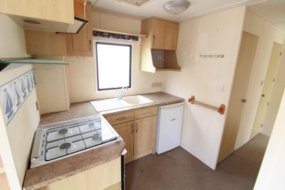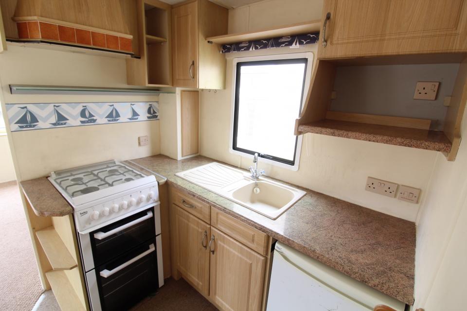 Una caravana de 2 dormitorios de 3,6 metros de ancho. SE VENDE COMO SE VE PARA RENOVACIÓN. El salón tiene una chimenea de gas GLP y un sofá independiente. El comedor tiene algunas sillas y espacio para colocar una mesa. Cocina amueblada con hornillo de gas GLP y buen almacenaje. El cuarto de baño está equipado con lavabo, inodoro y cabina de ducha estándar. Un dormitorio con dos camas individuales y otro con cama de matrimonio. Una caravana del año 2002.