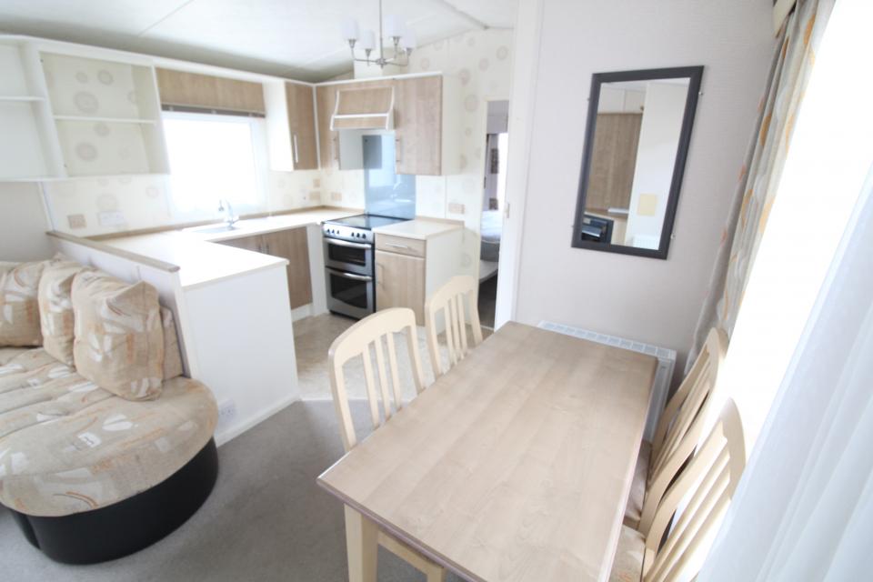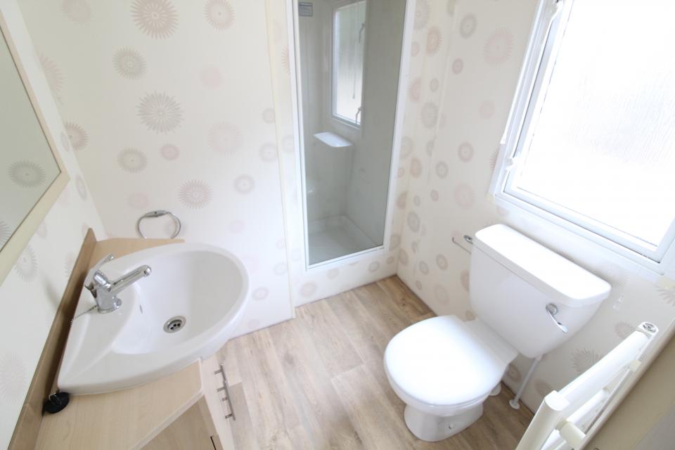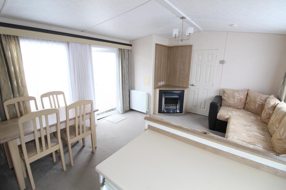 Una caravana de 2 dormitorios de 3,6 metros de ancho. Todos los electrodomésticos. Doble acristalamiento con calefacción central eléctrica. El salón situado en el centro de la caravana tiene asientos fijos y chimenea eléctrica. El comedor tiene una mesa y sillas independientes. Cocina amueblada con horno eléctrico y vitrocerámica. La habitación doble en la parte delantera de la caravana tiene su propio cuarto de baño privado con ducha. Está equipado con lavabo, inodoro y cabina de ducha estándar. La habitación doble en la parte trasera de la caravana tiene un cuarto de baño adyacente. Esta habitación está equipada con lavabo, inodoro y cabina de ducha estándar. Una caravana de 2009 limpia y ordenada.