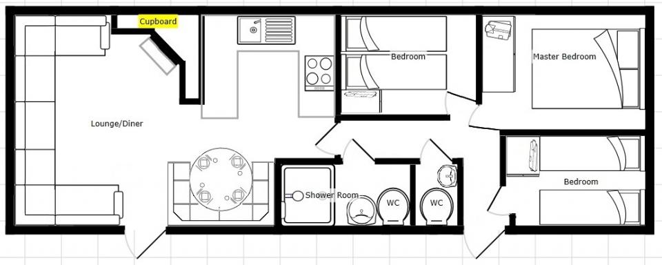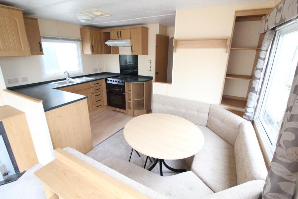 Una caravana de 3 dormitorios de 3,6 metros de ancho. Climalit y calefacción central de gas GLP. El salón tiene alfombra nueva, asientos fijos y chimenea de gas GLP. El comedor tiene alfombra nueva, asientos fijos y una mesa independiente. Cocina amueblada con hornillo de gas GLP y buen almacenaje. El cuarto de baño está equipado con lavabo, inodoro y ducha grande. La caravana dispone de un aseo adicional independiente. Tanto el cuarto de ducha como el inodoro han sido equipados con linóleo nuevo. Dos habitaciones dobles y una habitación principal. Una caravana del año 2006.