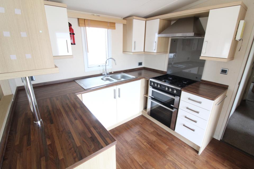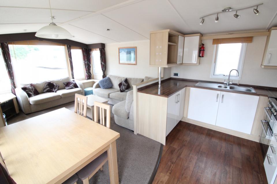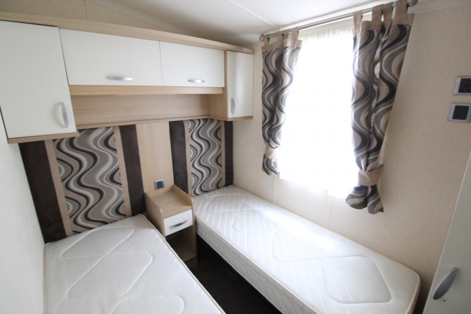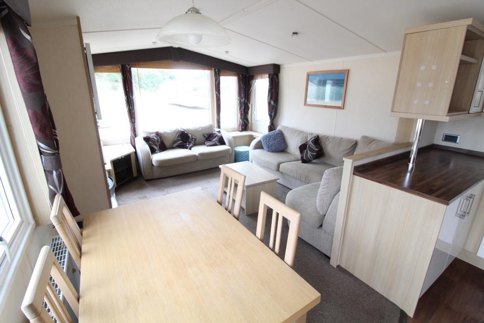 Una caravana de 2 dormitorios de 3,6 metros de ancho. Climalit y calefacción central de gas GLP. El salón tiene asientos fijos, techo en ápice y chimenea de gas GLP. El comedor tiene una mesa y sillas independientes. Cocina amueblada con hornillo de gas GLP y buen almacenaje. El cuarto de baño está equipado con lavabo, inodoro y cabina de ducha grande. Un dormitorio con dos camas individuales y un dormitorio doble con baño privado. Una caravana del año 2012.