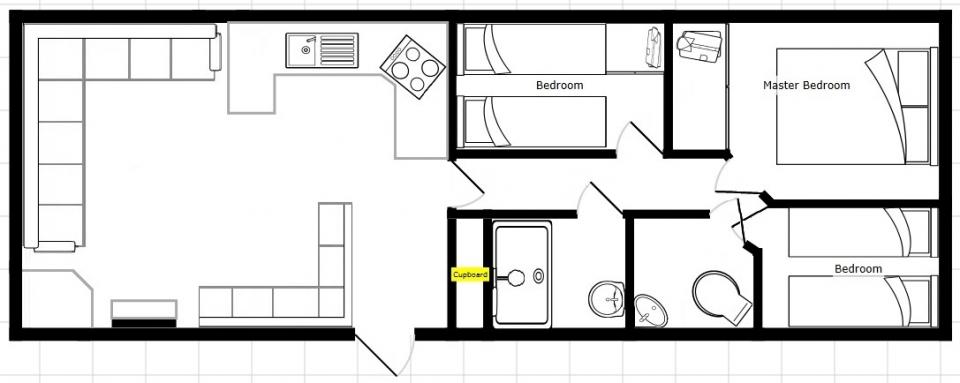 Una caravana de 3 dormitorios de 3,6 metros de ancho. Doble acristalamiento con calefacción central de gas GLP. El salón tiene asientos fijos, techo a dos aguas y un estufa de gas GLP. El comedor tiene asientos fijos y espacio para una mesa independiente. Cocina equipada con una cocina de gas y un buen almacenamiento. Baño separado y baño. Ducha grande. Dos habitaciones dobles y una habitación principal. Una caravana de 2007.